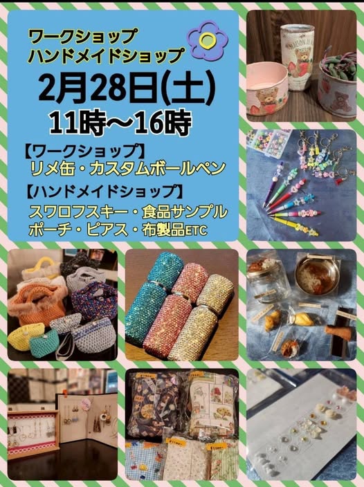 ワークショップ・ハンドメイドショップ今週末の土曜開催!!
